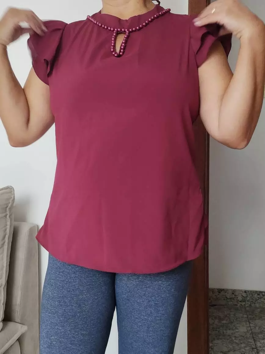 Linda Blusa Modinha Social Manga Curta Feminina Evangélica - 652
