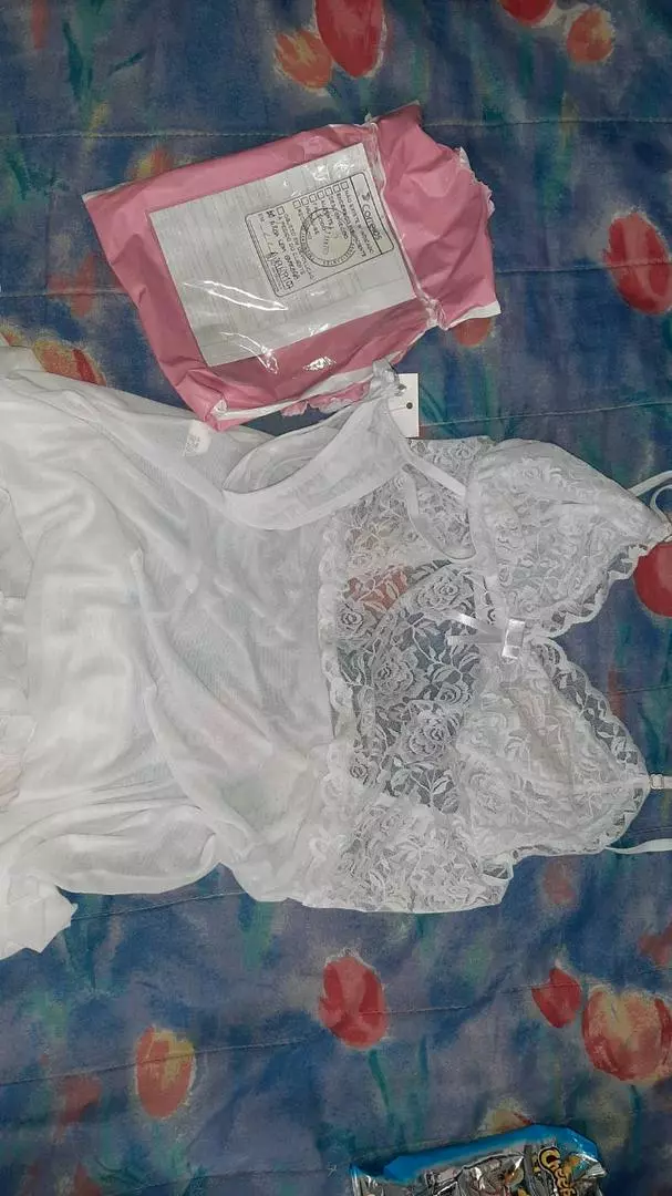 A camisola possui renda na parte superior dando mais delicadeza à peça e forro também tule nos seios