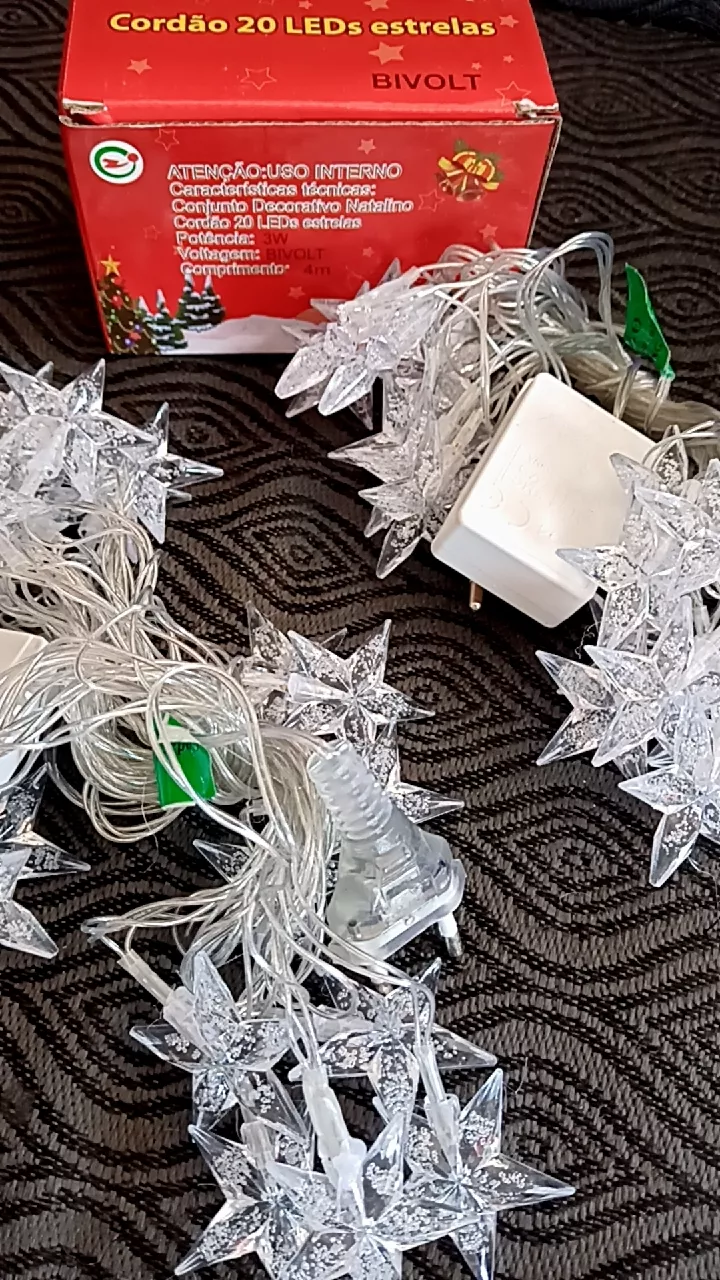 Adquira a Luminária Cordão Fio De Luz com 20 estrelas em LED para deixar sua decoração natalina ainda mais encantadora. Com 4 metros de comprimento, é perfeita para iluminar seu ambiente com um brilho suave e aconchegante. Aproveite os preços baixos e descontos especiais na loja online da Raryel.
