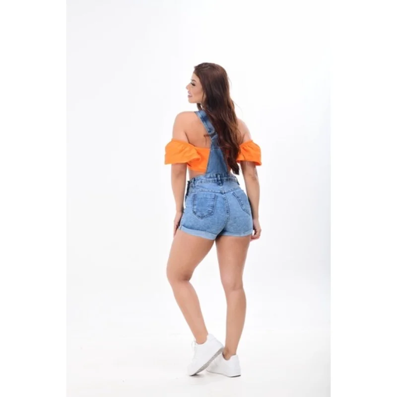 Compre o macaquinho jeans com lycra da Raryel, perfeito para um look casual e despojado. Aproveite nossos preços baixos e promoções exclusivas!