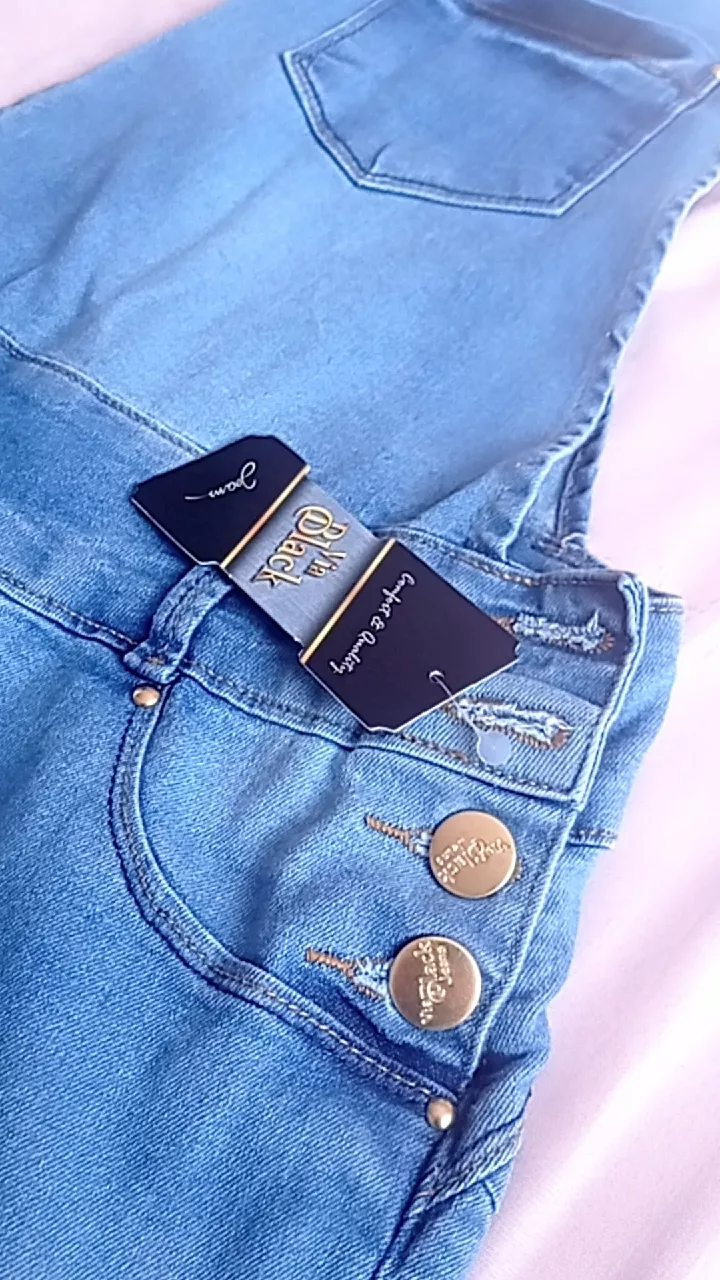 Macacão Liso Feminino Cintura Alta em Jeans com Elastano - 44