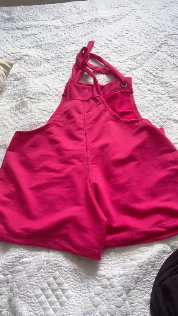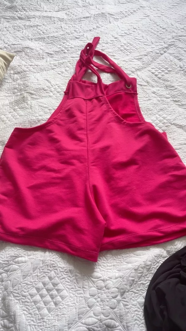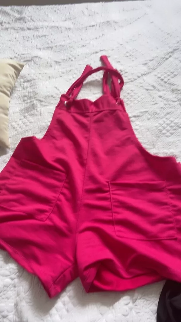 Macaquinho Feminino Curto Jardineira Soltinha Bolso Regulável - Promoção - Coral