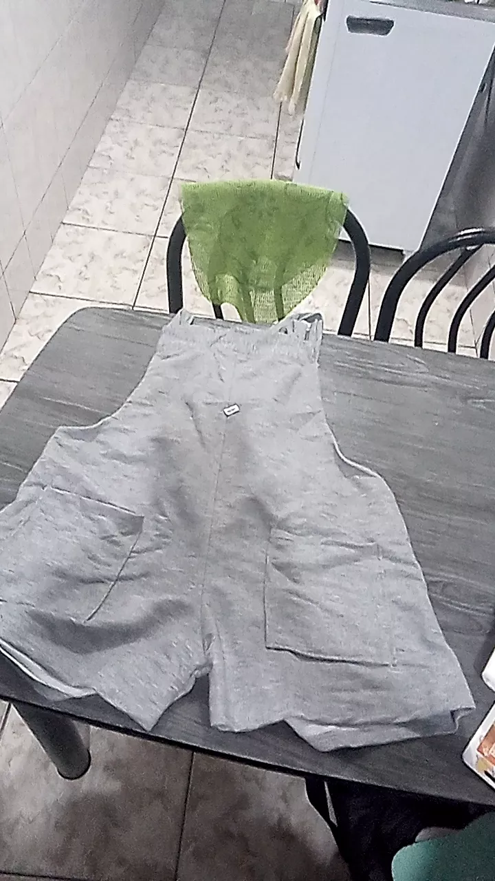 Jardineira com suspensório regulável podendo ajustar o comprimento altura da peça