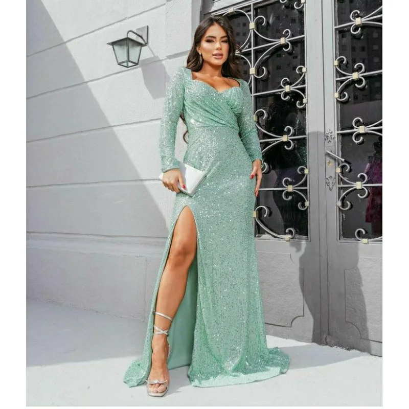Compre o Vestido Feminino Longo Paetê Manga Longa perfeito para festas e madrinhas. Na loja online de roupas Raryel, você encontra preços baixos, promoções e descontos imperdíveis.