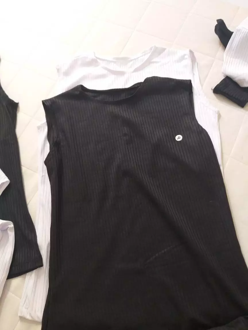 Regata decote U frente e costa malha canelada 96poliester 4 elastano malha macia e com muito elastano aue adere ao corpo confeccionamos do tamanho P ao GG nos tons preto e branco modelo slim mais justo