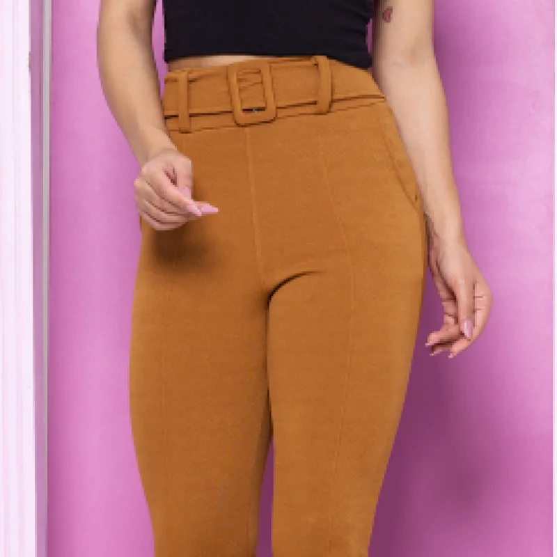 Calça Feminina Com Cinto Forrado da mesma cor da calça