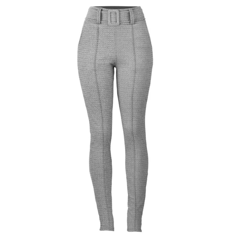 Malha Crepe Calça Feminina Skinny com Cinto Forrado - Cinza