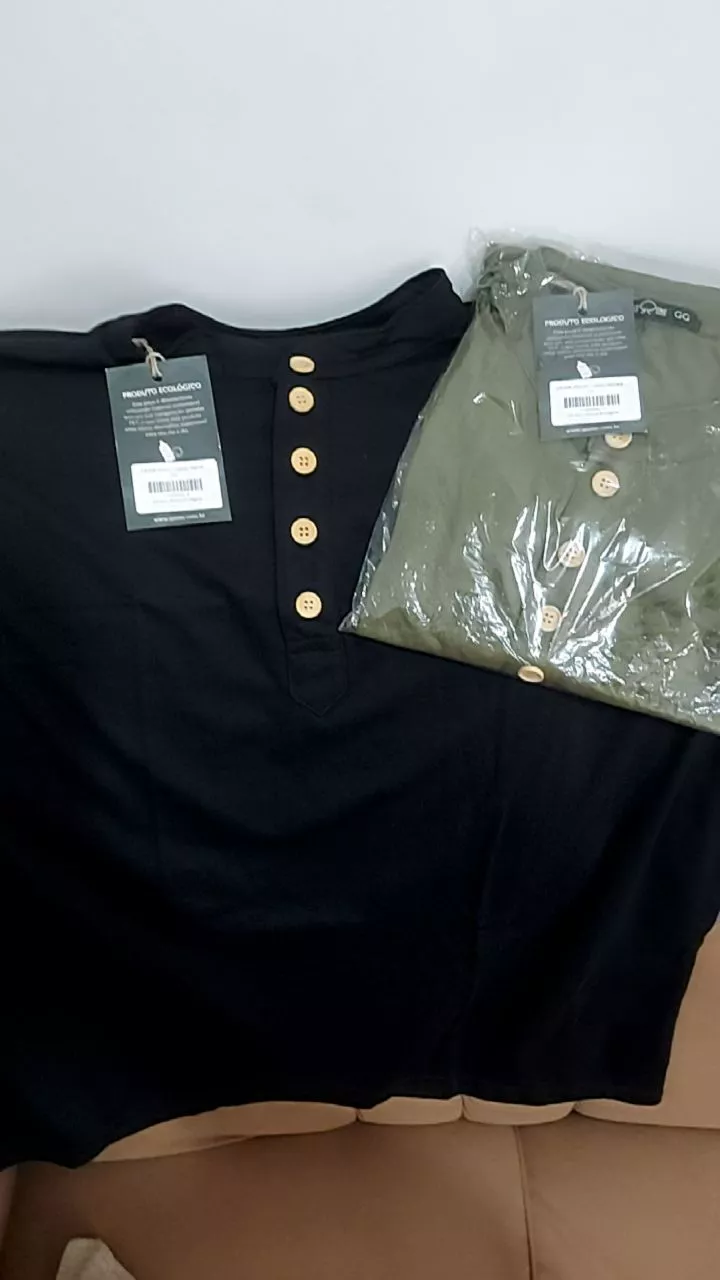 CAMISA HENLEY GOLA PADRE MANGA CURTA COM BOTÕES DE MADEIRA