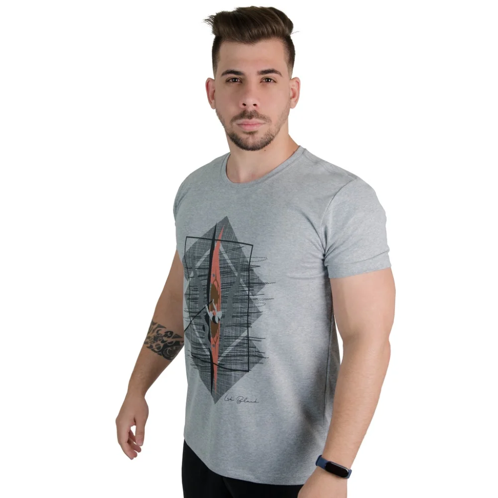 Malha Premium Estampada Camiseta Masculina Gola Redonda Canoa - Cinza Claro