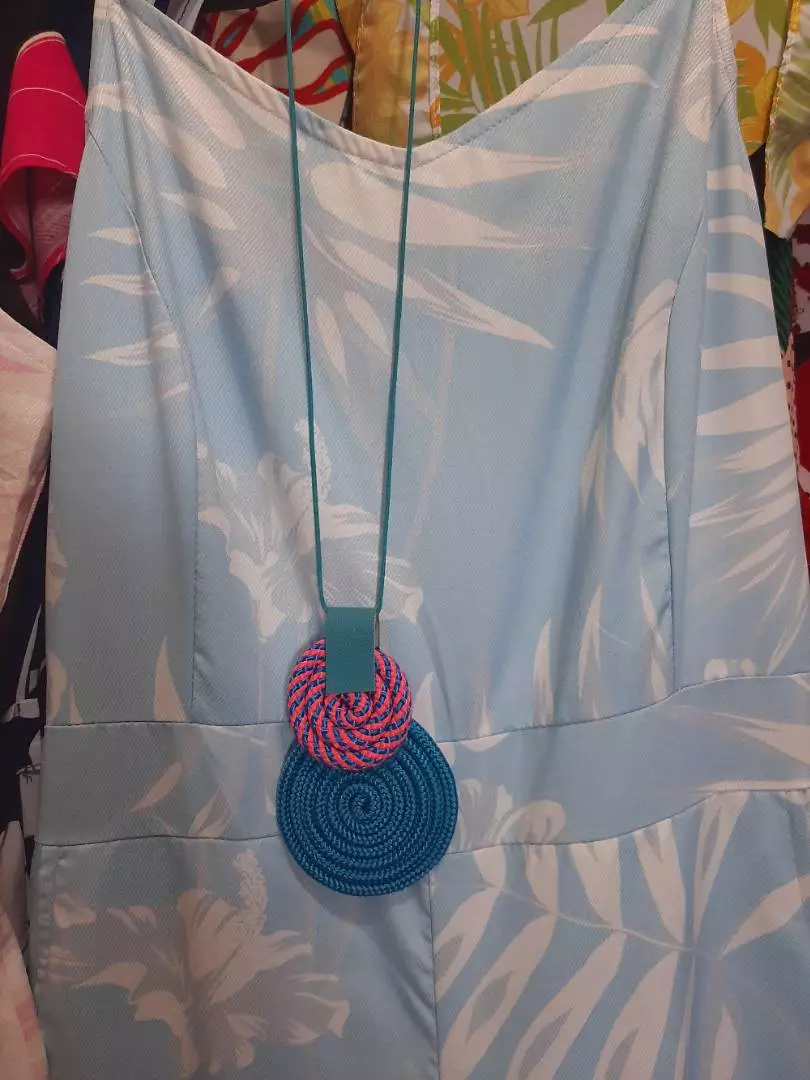 Mandala Dupla Maxi Colar Colorido Artesanal de Corda Náutica - 7.Neon c/Azul