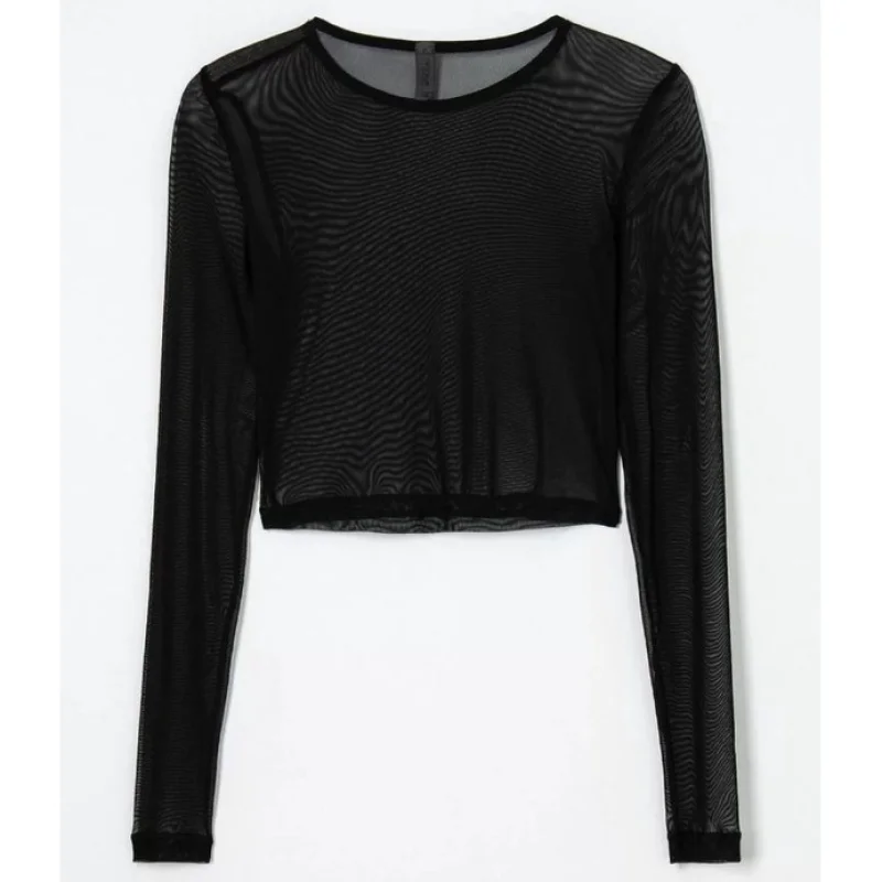 Encontre na loja online de roupas Raryel o Manga Longa Cropped Preto em Tule Liso. Compre agora e aproveite nossos preços baixos, promoções e descontos!