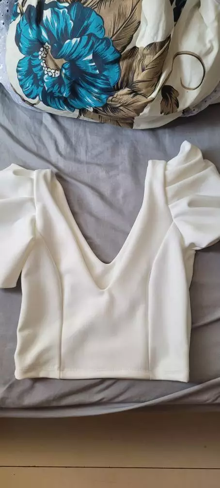 Blusa Cropped com decote profundo e manga de pregasO tecido estica e é super confortável