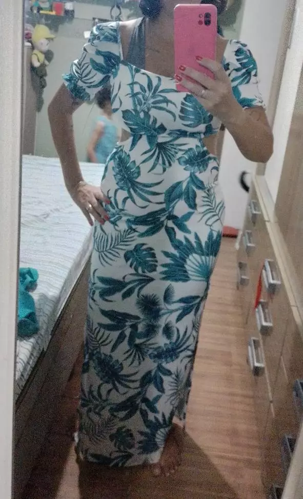 Manguinha longa feminina com vestido de fenda lateral - Florido detalhes