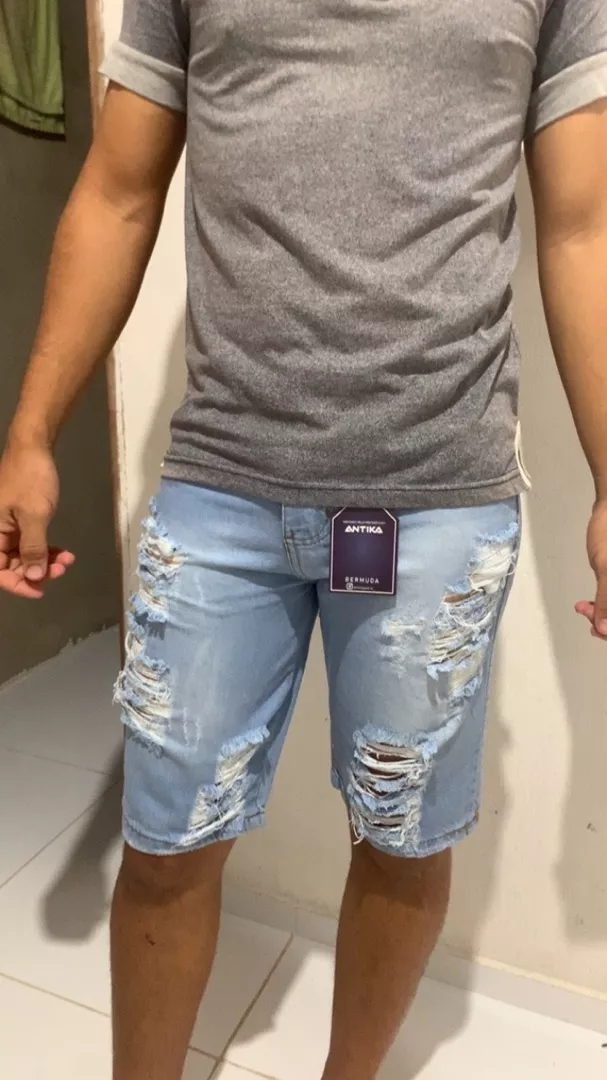 Compre o Kit com 2 Bermudas Jeans Masculinas Destroyed Rasgadas e Desfiadas na loja online de roupas Raryel. Aproveite nossos preços baixos e descontos especiais!