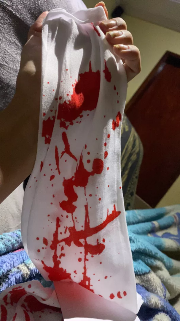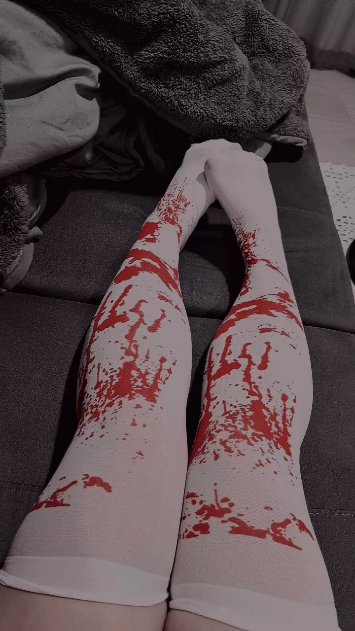 Meia Branca Halloween Feminina Adulto Com Manchas de Sangue 7/8 - SANGUE CORTE