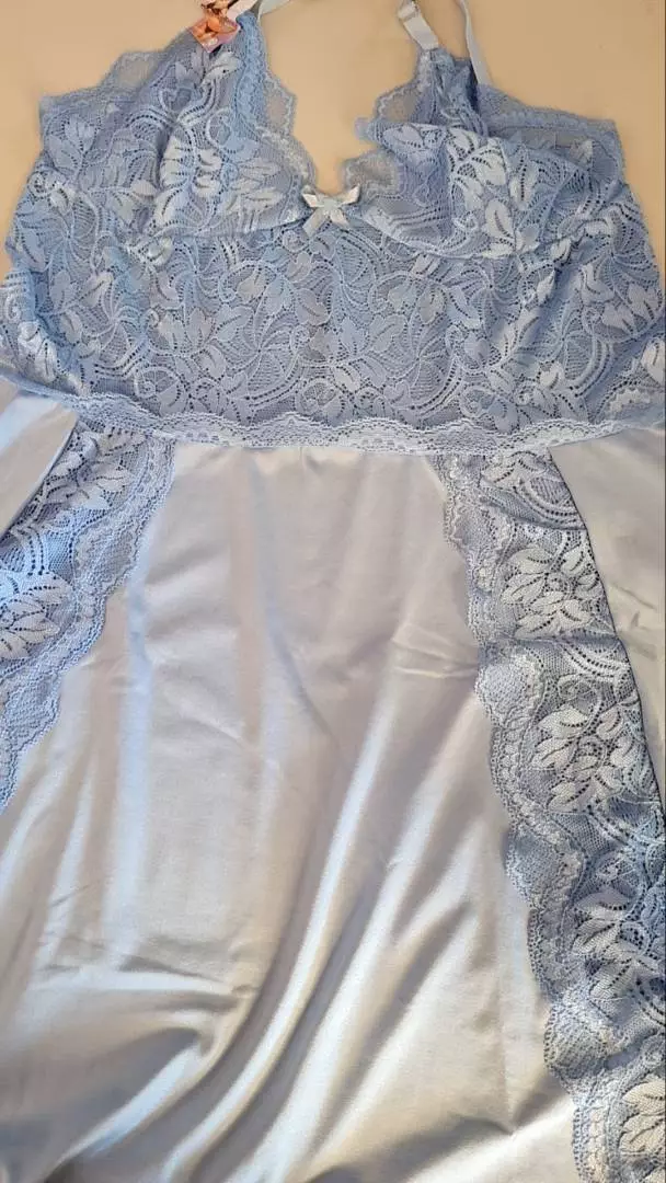 A parte da saia possui modelagem com comprimento menor da parte da frente deixando a camisola com bastante movimento