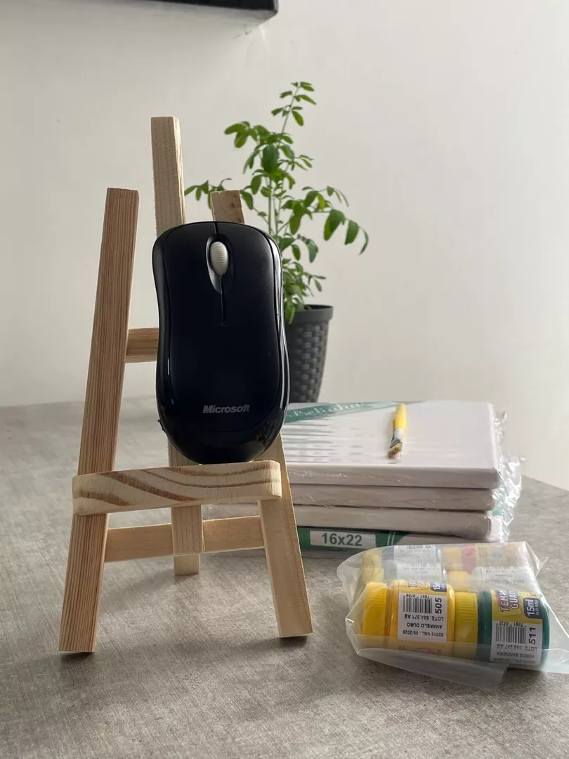1 Mini Cavalete de mesa em madeira Pinus Medidas 11x17cm altura 23cm