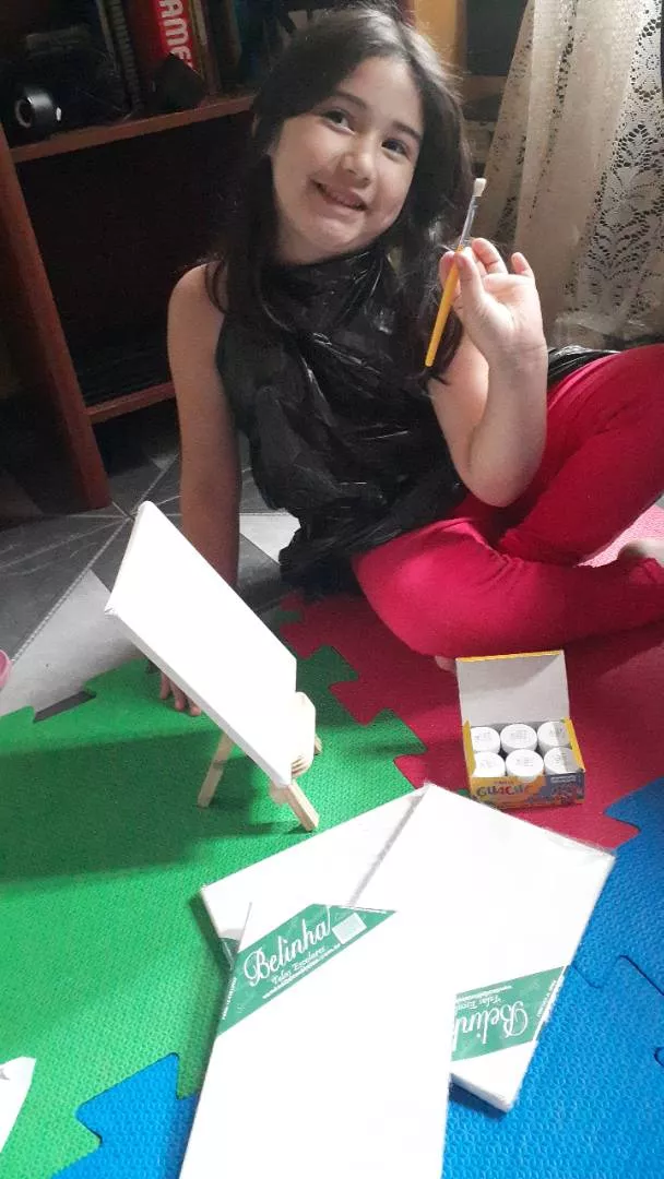 Compre o Kit Pintura 4Telas 16X22 + Mini Cavalete na loja online de roupas Raryel. Aproveite nossos preços baixos e promoções para soltar a sua criatividade com esse kit completo que inclui tintas e pincel.