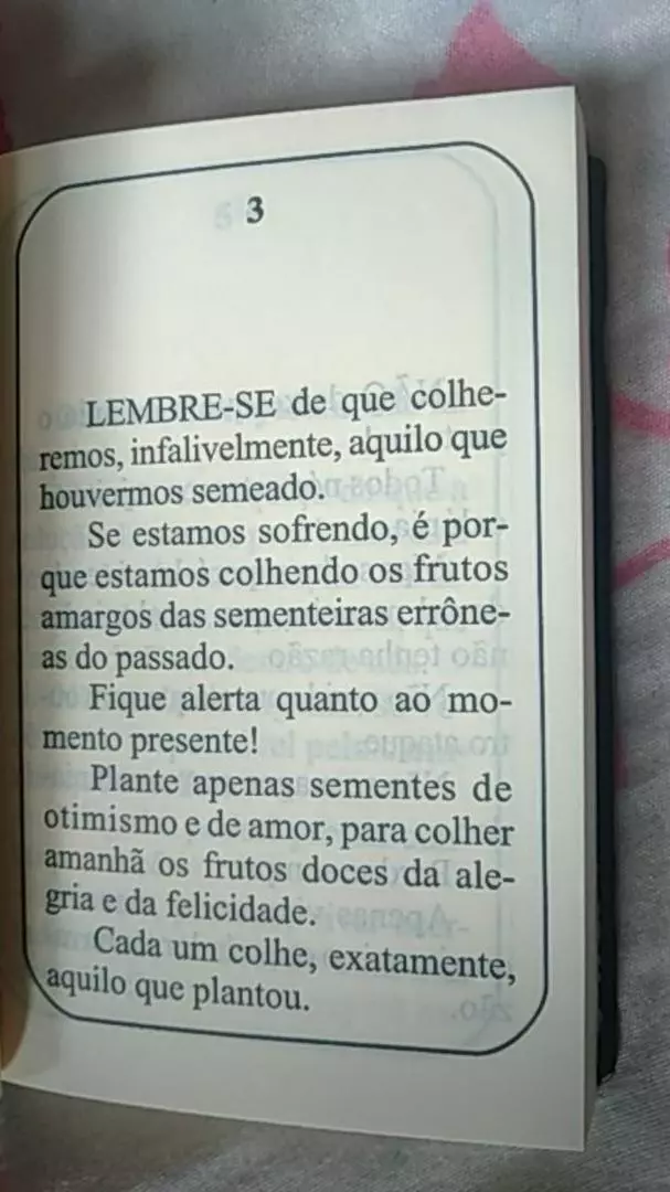 É um pequeno grande livro de bolso repleto de pensamentos que inspiram e alentam Apresenta reflexões pensamentos conselhos curtos e penetrantes que auxiliam nas horas difíceis e nos momentos leves alegram e elevam a alma Os temas são de serenidade paz e harmonia
