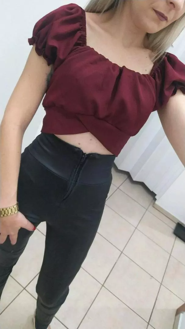 Compre o lindo Cropped Gringa com manga amarração nas costas na loja online de roupas Raryel. Peça delicada e super atual para compor seus looks. Aproveite preços baixos e promoções!