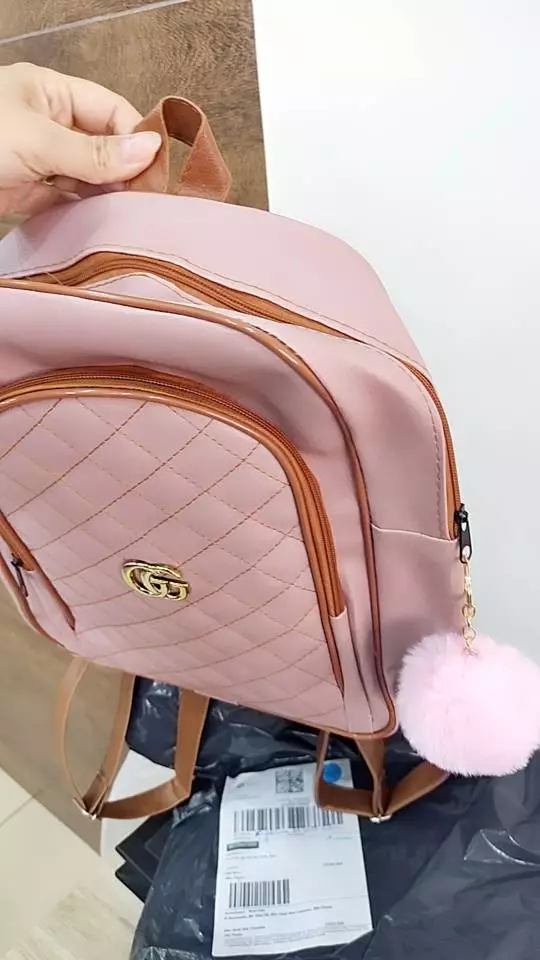 Acompanha o chaveiro Pompom sempre combinando com a cor da bolsa ou da mochila portanto conforme a foto ilustrativa ou não