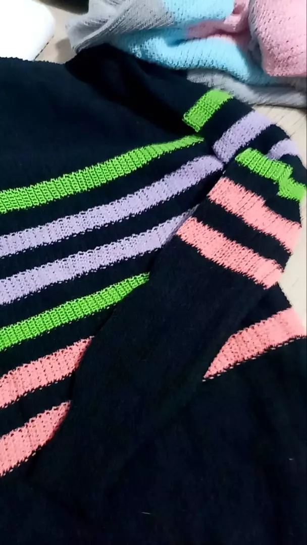 Moda Blogueira: Blusa Feminina Tricot Ciganinha 4 Cores - Chumbo c/ Listras Variadas