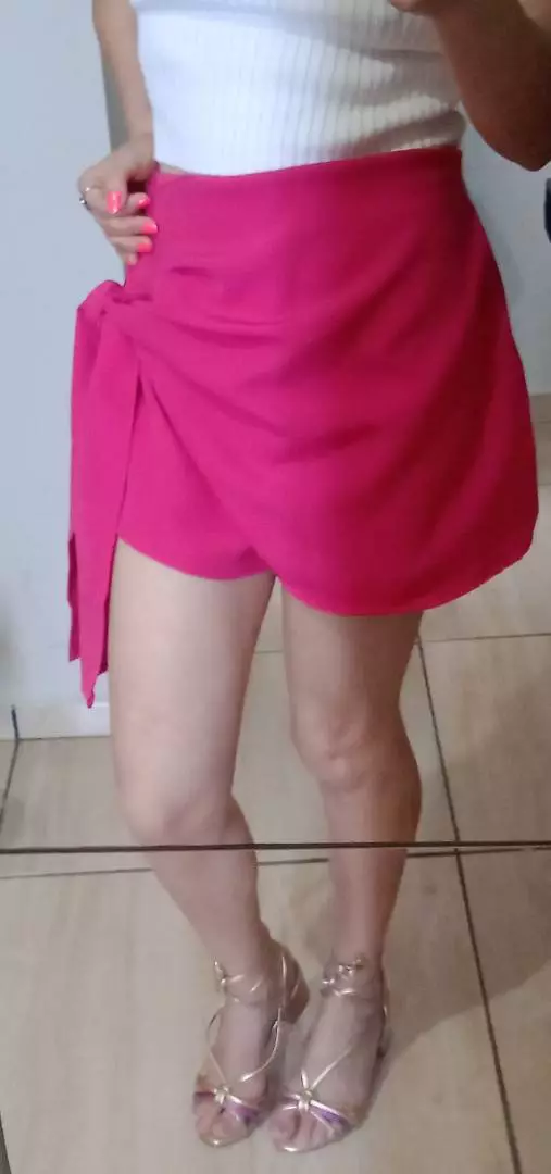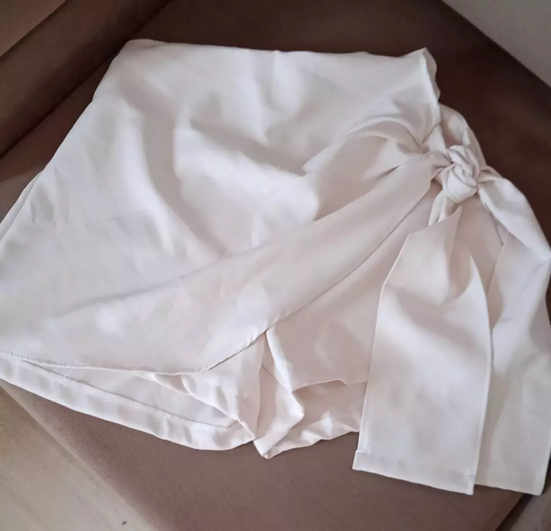 short saia feminino alfaiataria com elástico na parte de trás e amarração na lateral no tamanho m e g