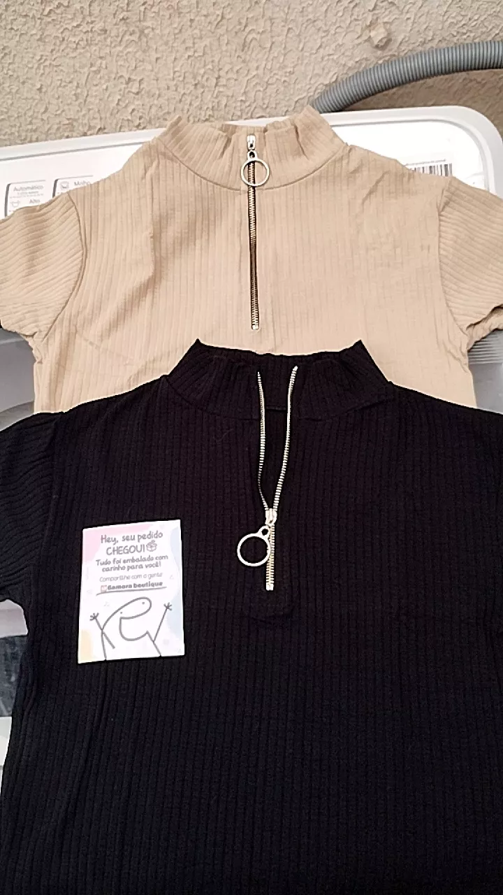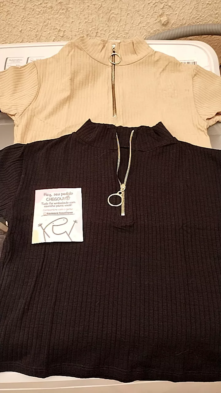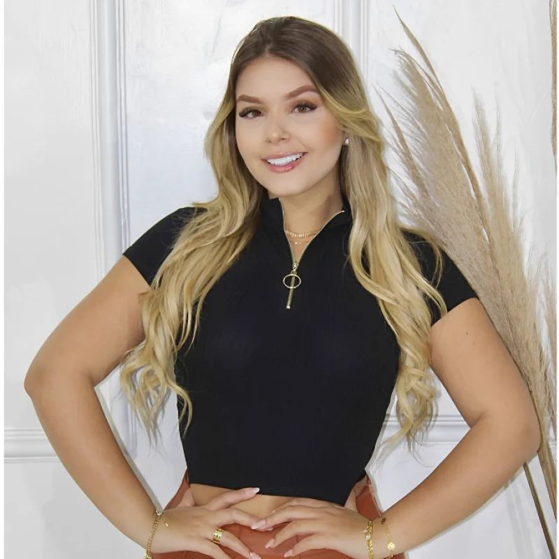 Cropped Feminino Canelado Com Zíper Manga Curta de alta qualidade e conforto