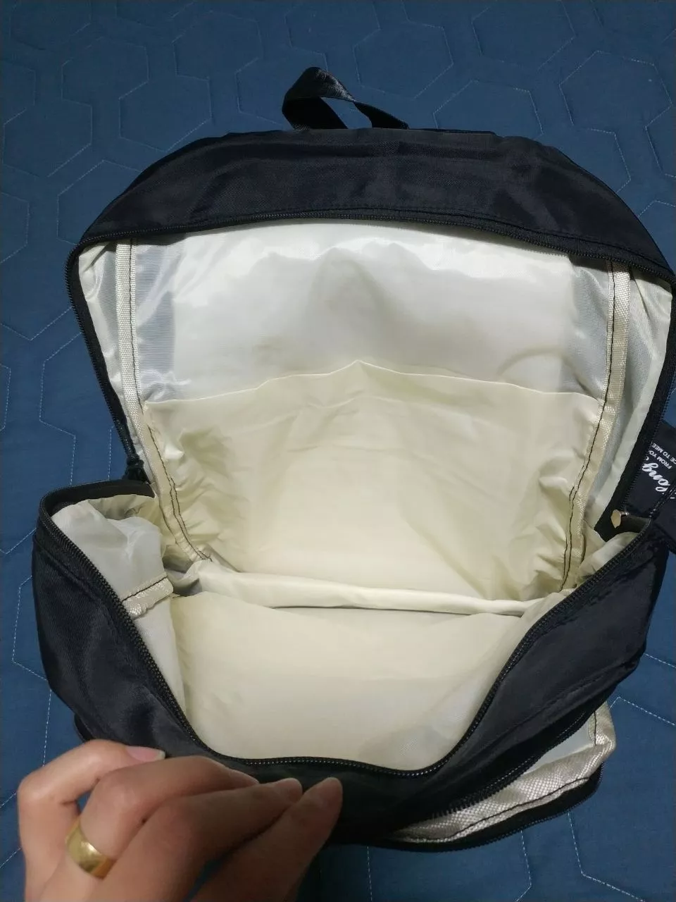 A mochila é perfeita para colocar seus pertences do dia a dia sem se preocupar com espaço