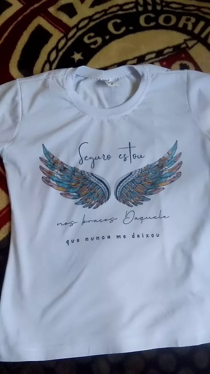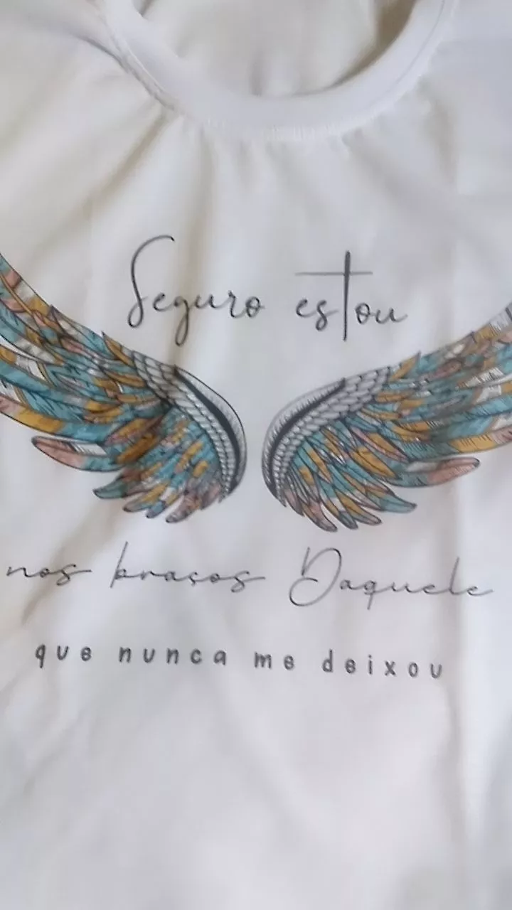 Moda Evangélica Feminina: Blusa T-shirt Asas Seguro Estou - GG - BABYLOOK
