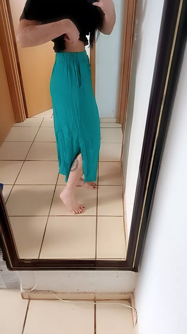 Saia Longa Fenda Lateral c Bolso Feminina Moda Evangélica Verão