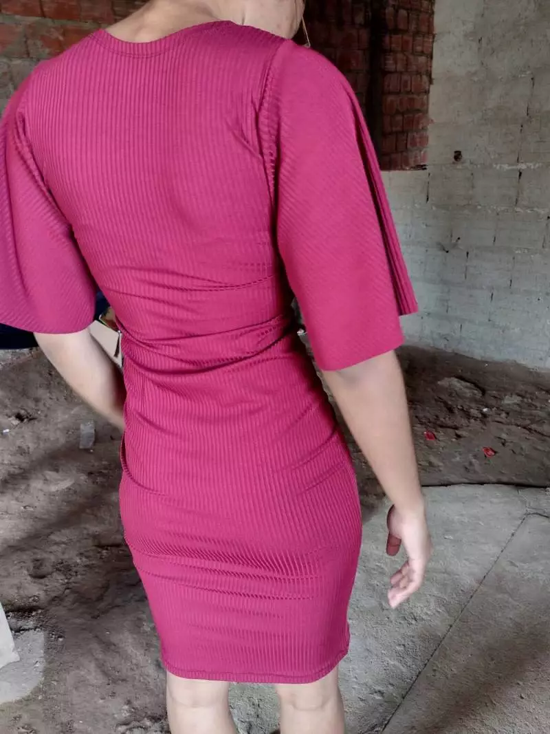 Vestido mídi canelado