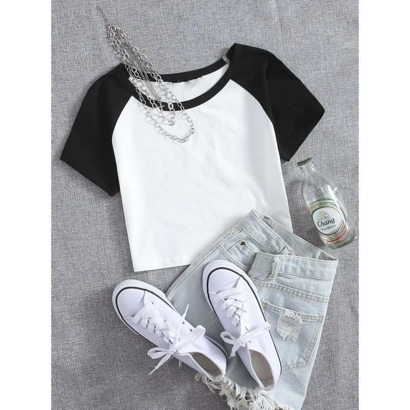Compre a camiseta crooped raglan feminina em duas cores na loja online Raryel. Aproveite nossos preços baixos e promoções exclusivas.