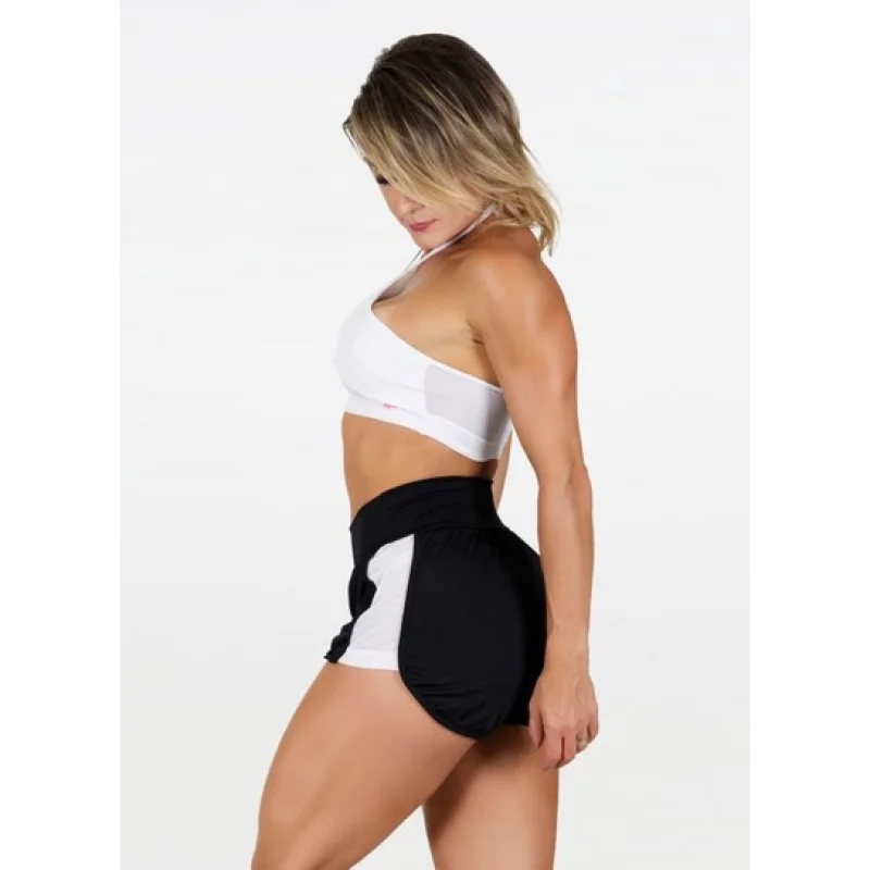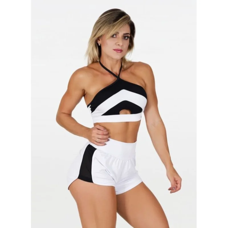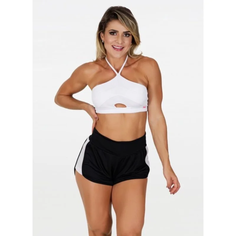 Moda feminina fitness curto Vivian cores - academia, corrida e caminhada - branco c preto