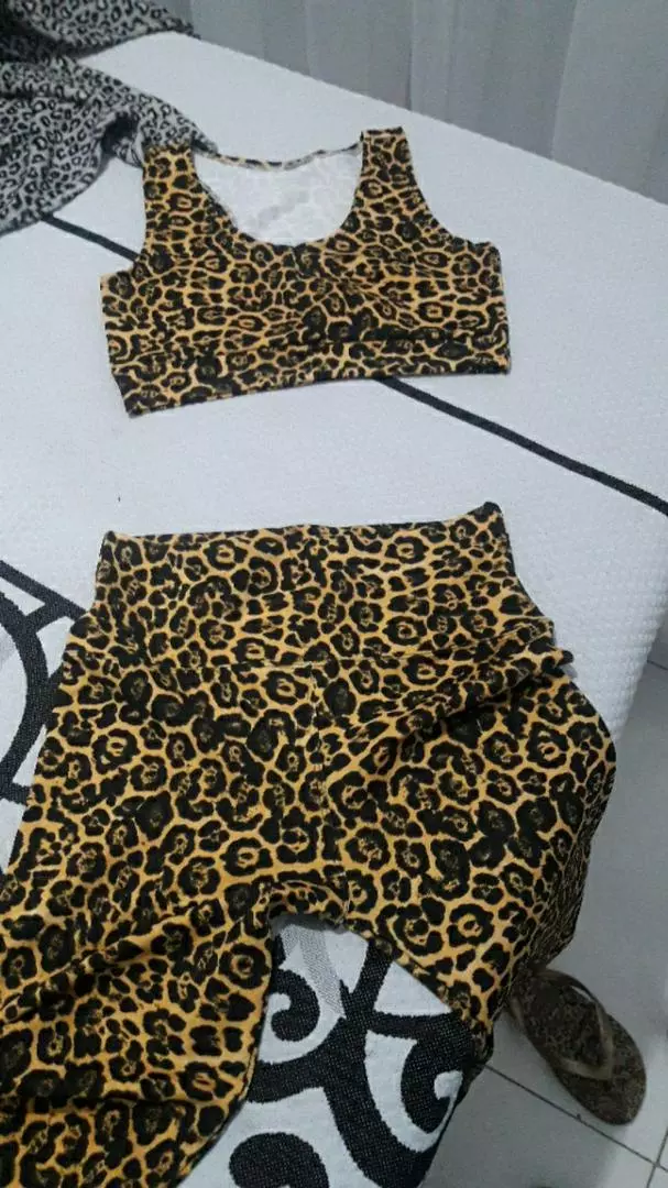 Moda Fitness Animal Print - Conjunto Calça e Top para Academia - P