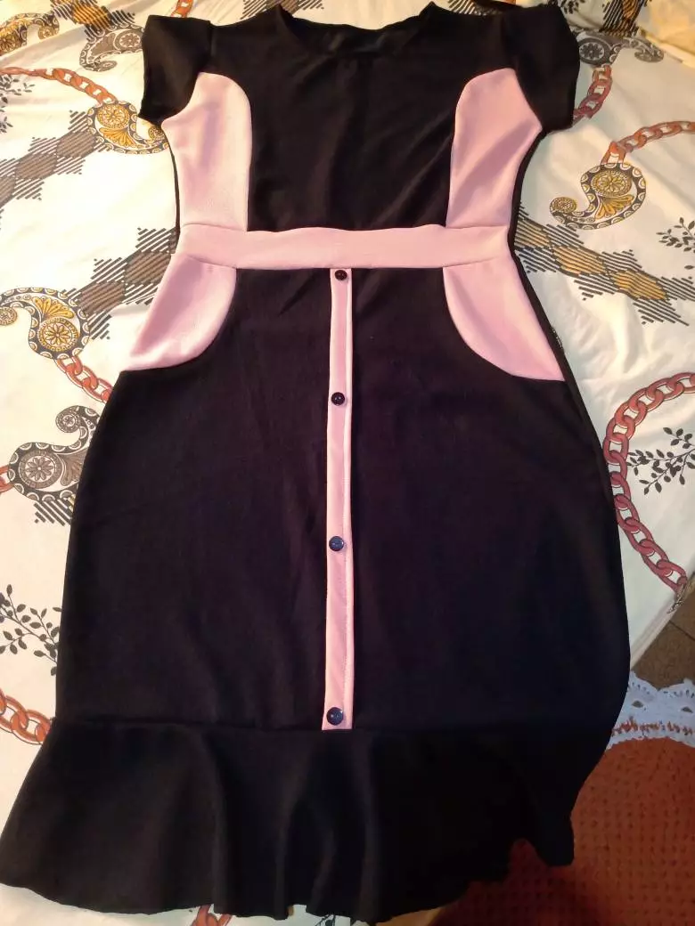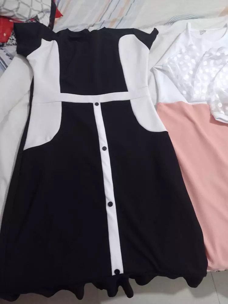 Moda Gospel Evangélica Vestido Babado Mais Vendido - PRETO COM BRANCO