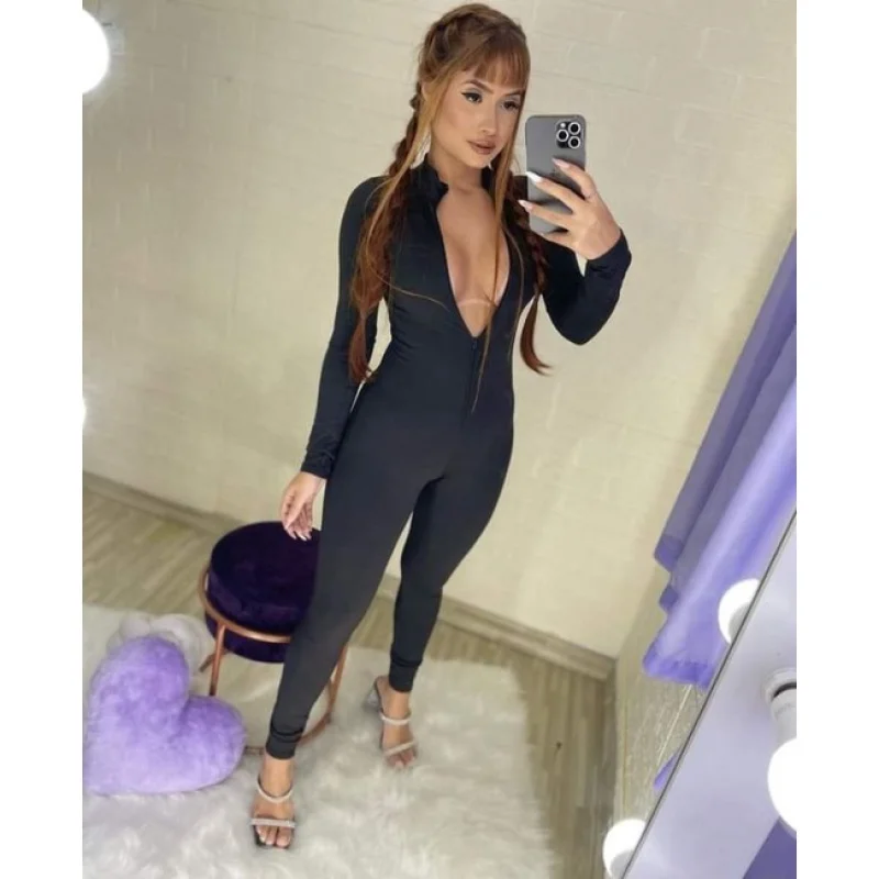 Compre o macacão feminino com manga longa e zíper da moda gringa na loja online de roupas Raryel. Aproveite preços baixos, promoções e descontos exclusivos!
