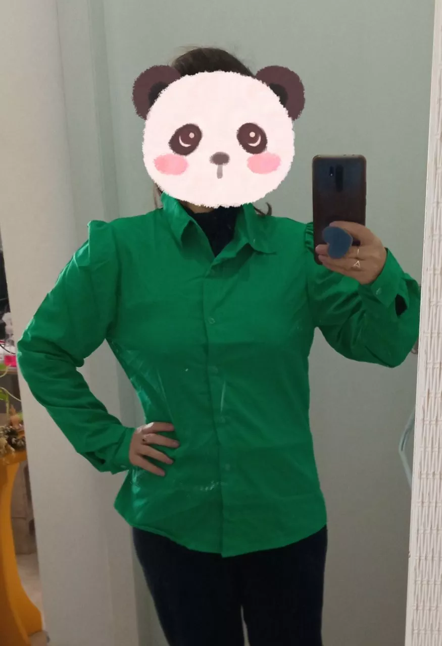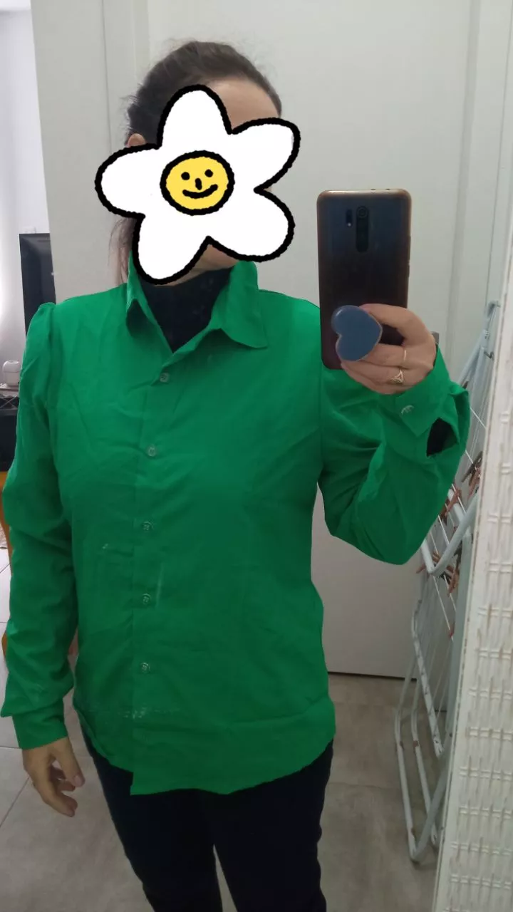 Moda Inverno: Camisa Feminina Social Manga Princesa/Bufante - Tendência - Verde Escuro