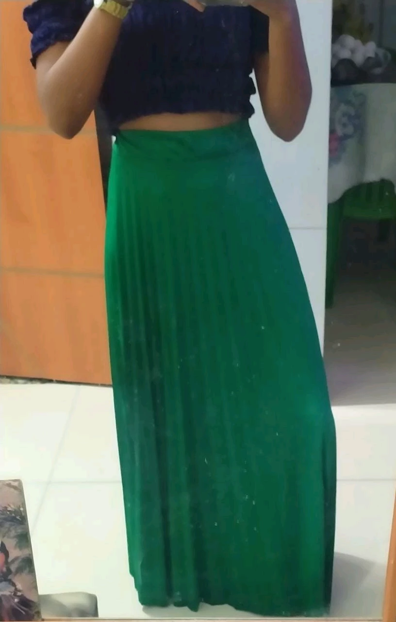 Encontre na loja online de roupas Raryel a Saia Longa Plissada em tecido helanca. Compre agora com preços baixos, promoções e descontos!