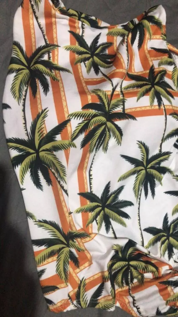 Os conjuntos de maiô com pareô em formato quadrado são fabricados em suplex digital