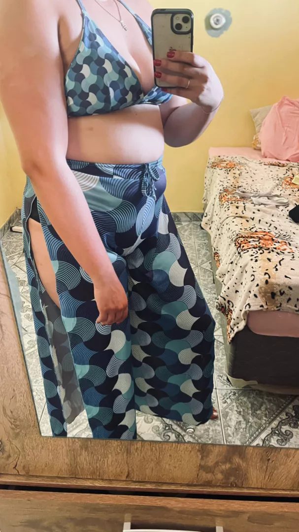 O conjunto de biquíni feminino com calça pantalona é perfeito para arrasar na praia ou piscina. Com um design moderno e estiloso, o conjunto oferece conforto e liberdade de movimento. A calça pantalona é ideal para usar como saída de praia, proporcionando um visual elegante e descontraído. O biquíni possui um top ajustável que se adapta ao corpo, garantindo sustentação e segurança. Além disso, a peça é confeccionada em tecido resistente à água do mar e ao cloro da piscina, garantindo maior durabilidade. Não perca tempo, compre agora mesmo na loja online da Raryel e aproveite nossos preços baixos, promoções imperdíveis e descontos exclusivos!