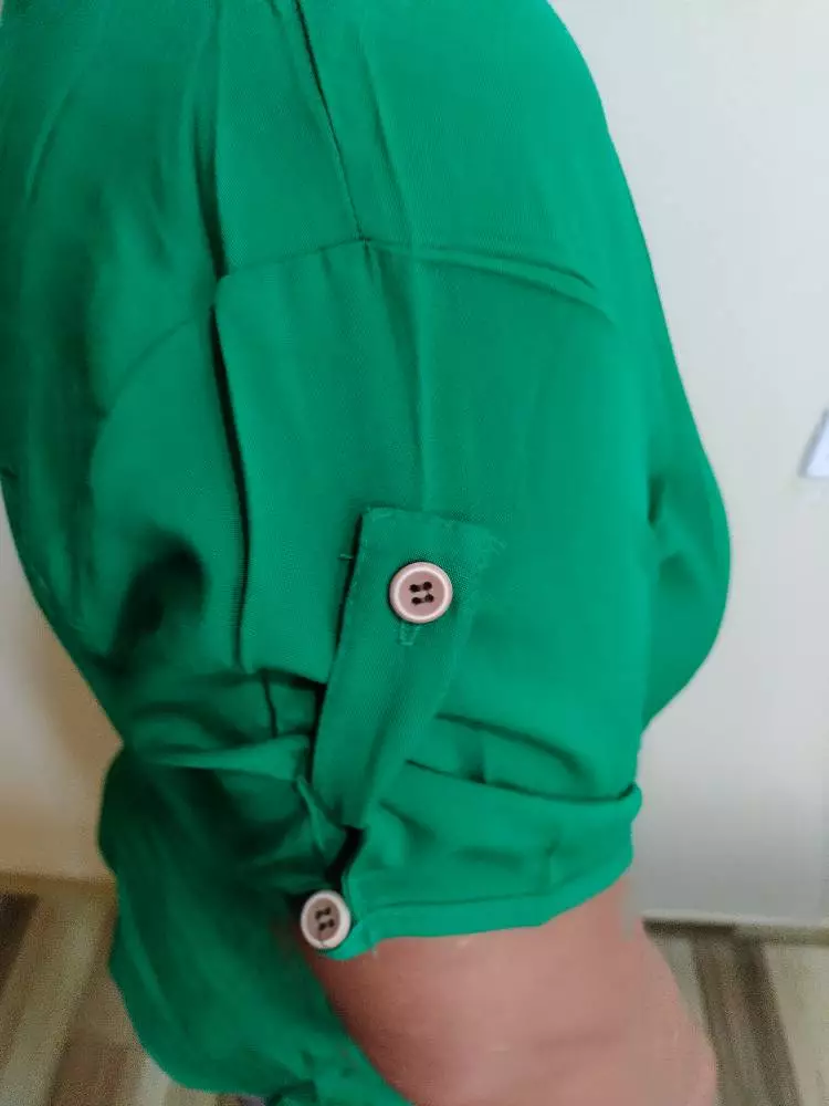 Blusa feminina modelo soltinha com botões na manga e na frente tecido leve e confortável