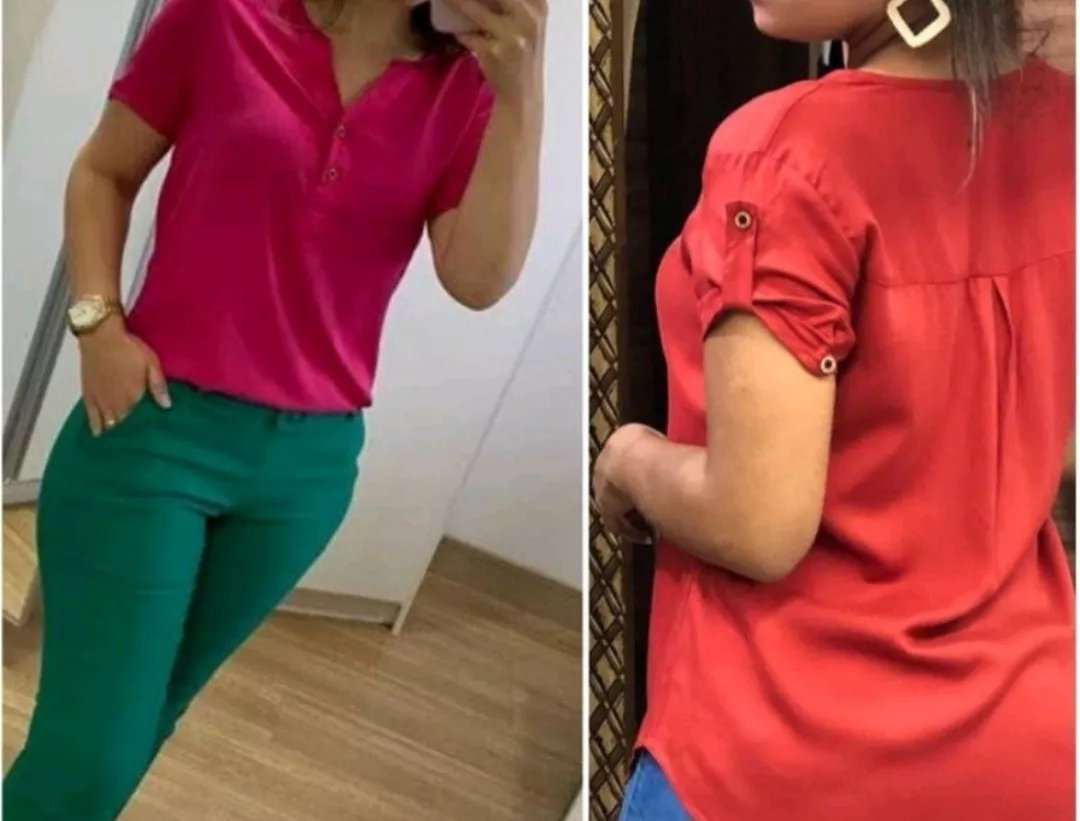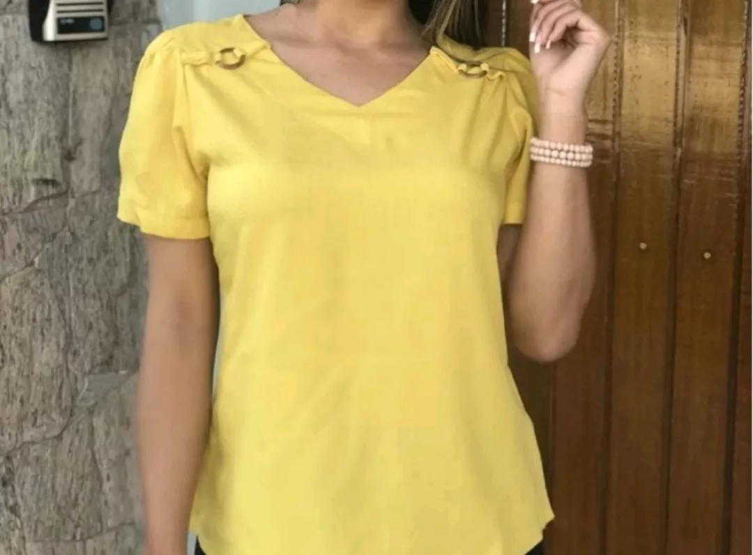 Blusa feminina modelo soltinha com botões na manga e na frente tecido leve e confortável