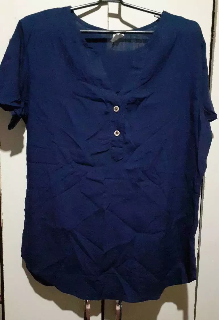 Blusa feminina modelo soltinha com botões na manga e na frente tecido leve e confortável