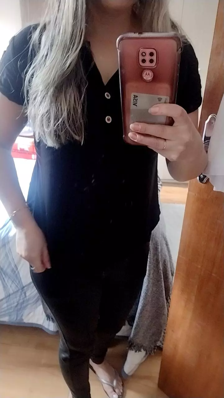 Moda Soutinho: Blusa Manga Curta Feminina Viscolinho com Botões P M G GG - Preto