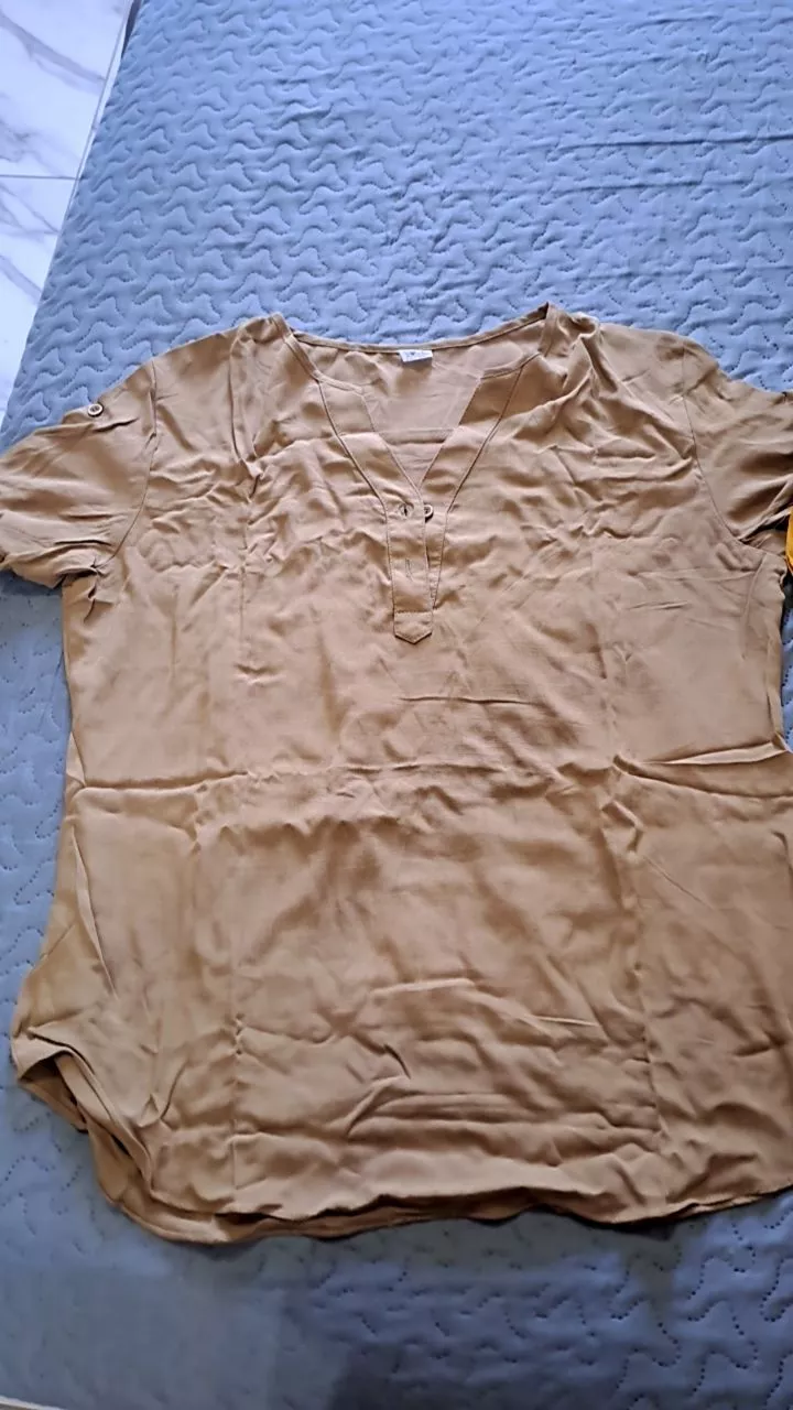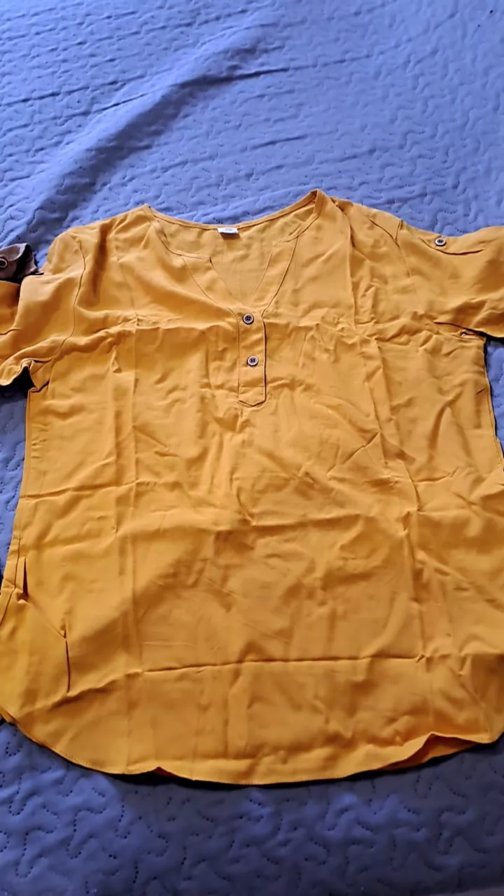 Blusa feminina modelo soltinha com botões na manga e na frente tecido leve e confortável