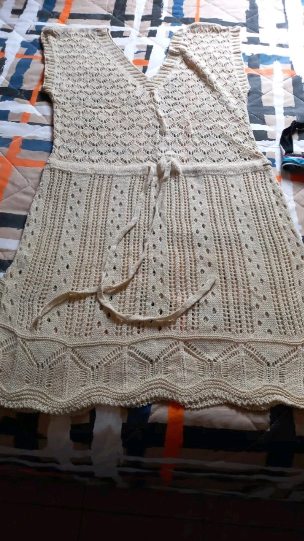 Moda Tricot Verao Fenda Acinturada Praia Curta - Off White