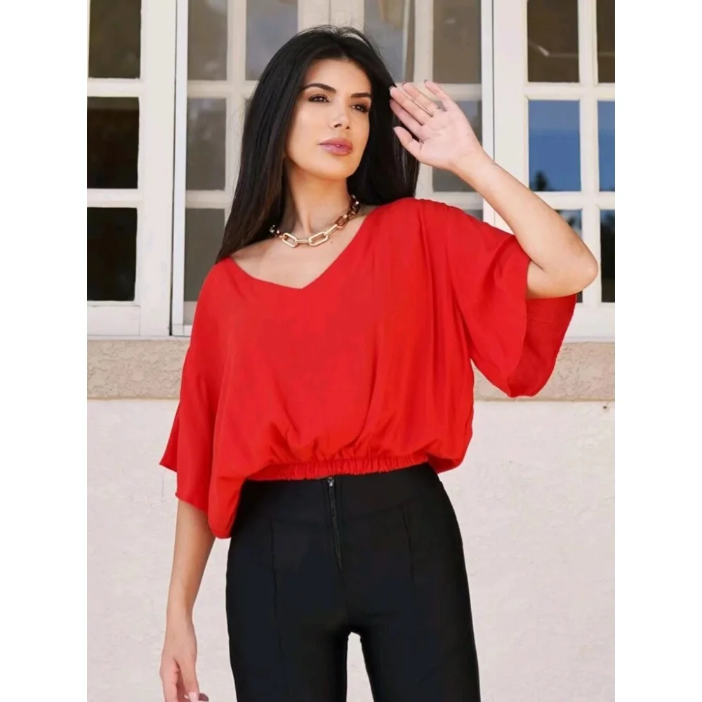 Moda verao blusa manga curta Duna - Vermelho
