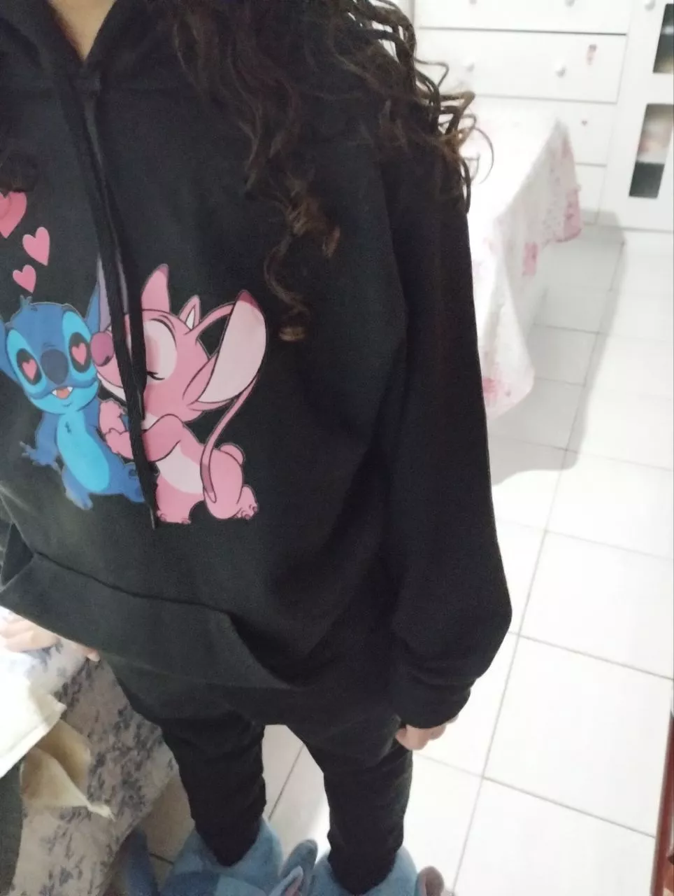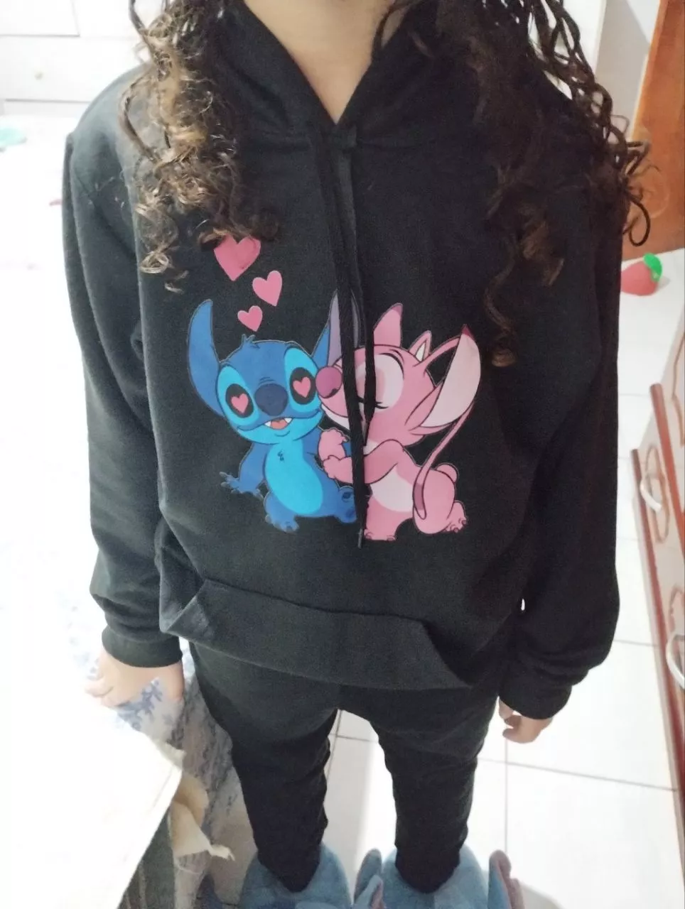 Seu design único traz a estampa do adorável personagem Stitch, que adiciona um toque de amor fofo ao visual. Com capuz ajustável e bolso canguru frontal, é prático e funcional para os dias mais frios.