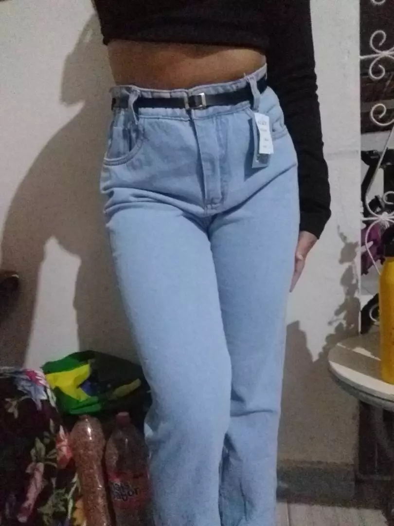 Calça Jeans Mom Com Cinto Feminina Cintura Alta